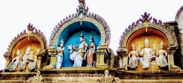 • பிரதான நுழைவாயிலின் மேற்புறச் சுதைச் சிற்பத்தில், சிவபெருமான் பார்வதியுடன் சிஷ்டகுருநாதராக சுந்தரருக்கு உபதேசிக்கும் காட்சி, விநாயகர், முருகன் சமேதராகக் காட்சியளிக்கிறது.